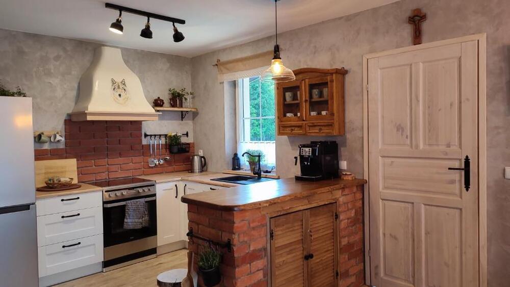 - kuchnię wyposażoną w piekarnik, płytę elektryczną, zmywarkę, lodówkę i ekspres do kawy, pełne wyposażenie w talerze, sztućce, kieliszki itd.