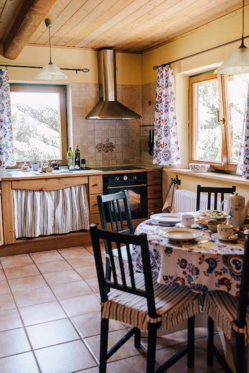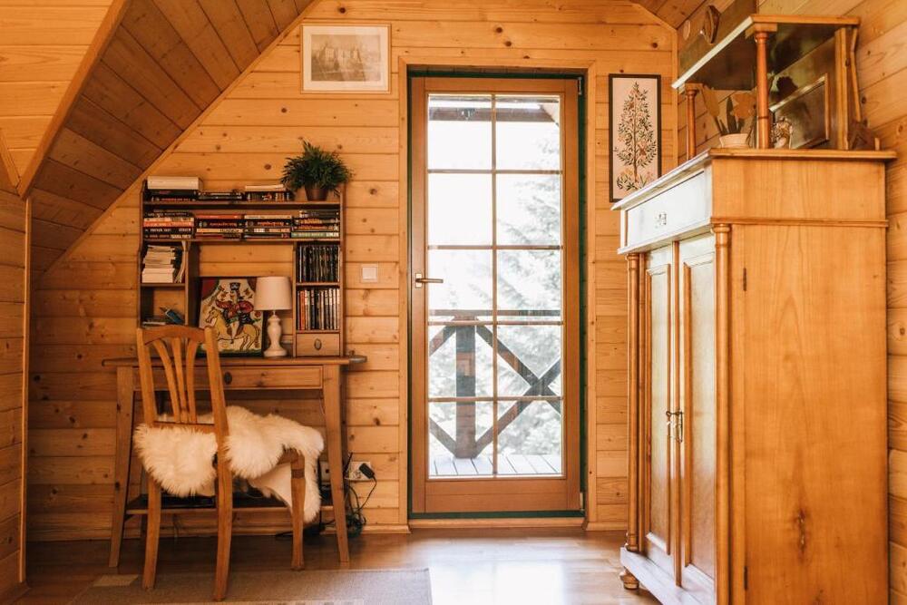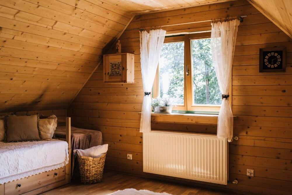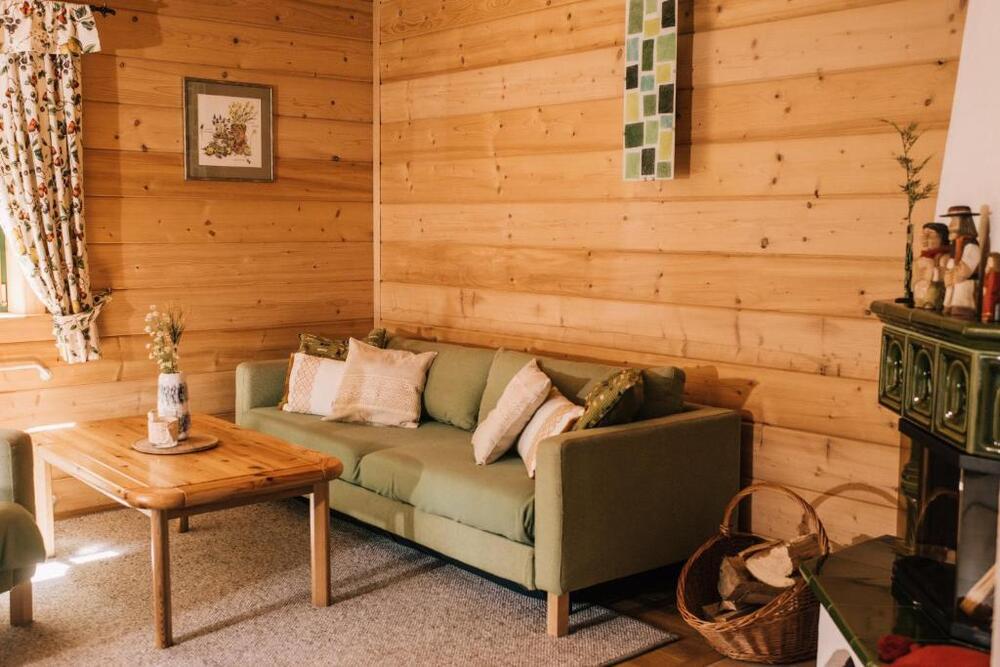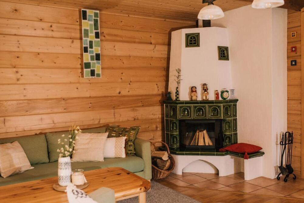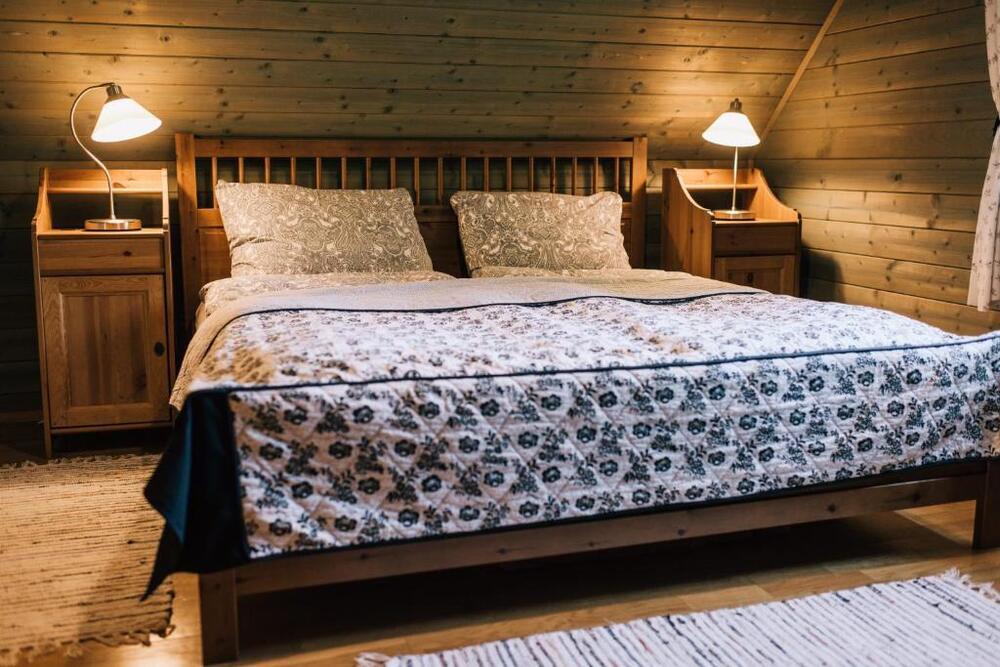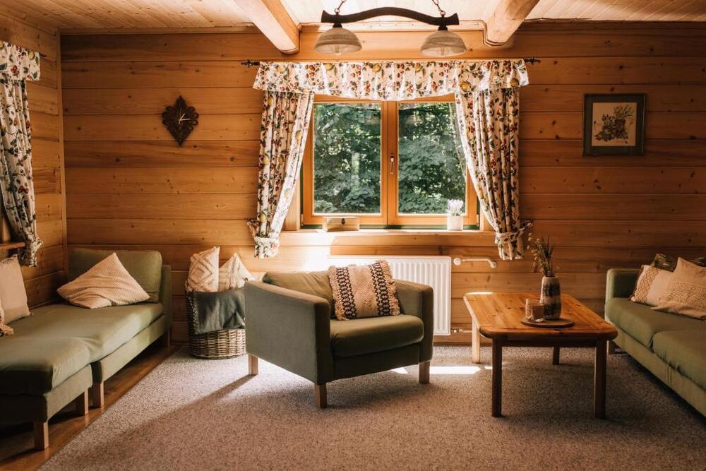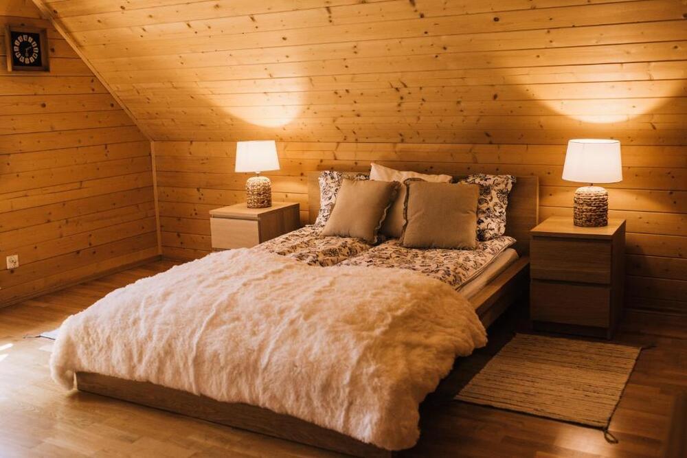 Domek obejmuje kilka sypialni (2), salon, kuchnię z pełnym wyposażeniem, w tym lodówką i czajnikiem, a także łazienkę (1) z prysznicem oraz wanną.