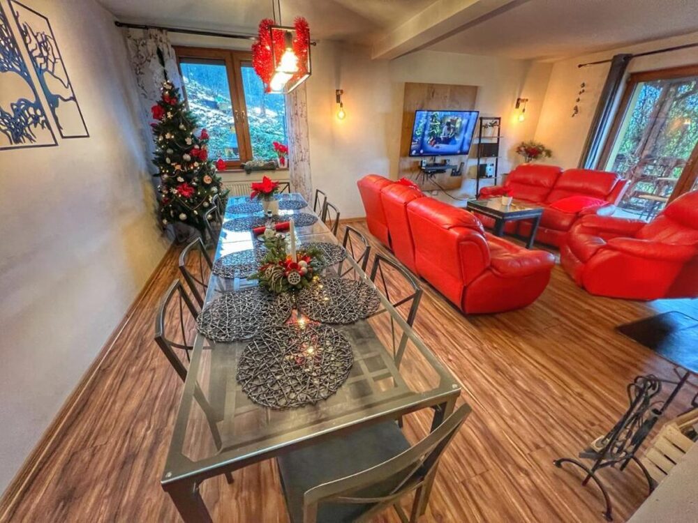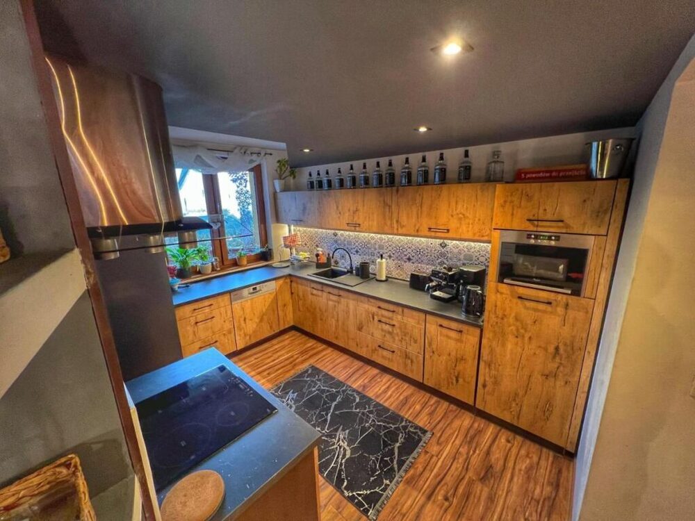 Oferujemy Państwu dom pod wynajem w miejscowości Brenna na stoku Stożka Breńskiego. Dom jest duży i przestronny. Parter jest typu open space - czyli duży salon z kominkiem i tv (netflix, hbo, show time, canal+), jadalnia ze stołem dla wszystkich osób, kuchnia, sypialnia, łazienka z wc i prysznicem oraz pralnią. Na piętrze znajdują się 3 sypialnie i duża łazienka z wc oraz wanną z hydromasażem. Dom posiada ogrzewanie centralne a dodatkowo można korzystać z kominka, co ma niebywały urok jesienią i zimą. Przez cały rok z tarasu rozpościera bajeczny widok na góry. Dom usytuowany jest na wzgórzu, na wysokości ok. 500 m n.p.m. W przypadku trudności z wjazdem zapewniamy pomoc. Dla relaksu od wiosny do jesieni można skorzystać bez dodatkowych opłat z kąpieli w „Beskidzkiej Balli” z jacuzzi w ogrodzie - (od listopada do końca marca opłata za balie wynosi 100 zł za pobyt) i grilla lub przez cały rok wewnątrz w wannie z hydromasażem. Za dodatkową opłatą można skorzystać z sauny. Kuchnia jest w pełni wyposażona w garnki, patelnie, talerze, sztućce, szklanki, kieliszki oraz kubki na 12 osób, do dyspozycji gości lodówka side-by-side z kostkarką do lodu i dystrybutorem wody ze studni głębinowej, 4ro punktową kuchnią indukcyjną, piekarnikiem, zmywarką, pralką. Dla miłośników kawy mamy dwa ekspresy: ekspres ciśnieniowy kolbowy i przelewowy, poza tym toster oraz kuchenkę mikrofalową. Dla fanów gier udostępniamy PS4 z 2 padami. Parking na terenie posesji jest bezpłatny. Dom jest przystosowany dla rodzin i grup. Na okres świąteczny w ofercie uwzględniony jest też odpowiedni wystrój. Dom idealny jest na różnego rodzaju imprezy okolicznościowe jak urodziny, wieczory kawalerskie/panieńskie, imprezy integracyjne, zjazdy przyjaciół, rocznice itp. pod warunkiem stosowania się do ciszy nocnej, przede wszystkim w otwartej części domu i ogrodzie. Z najmu wyłączony jest garaż oraz pomieszczenia gospodarcze. Zapraszamy.