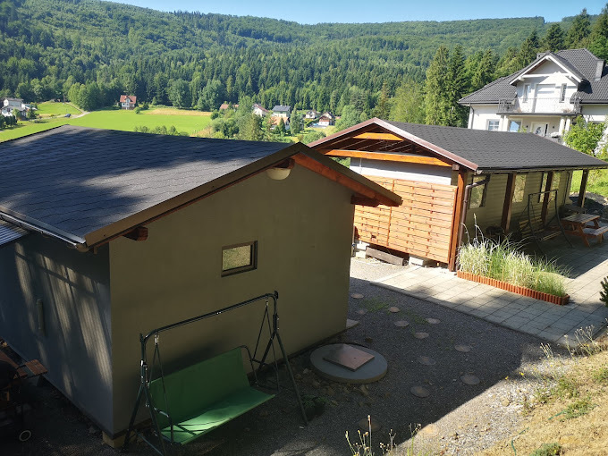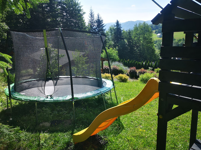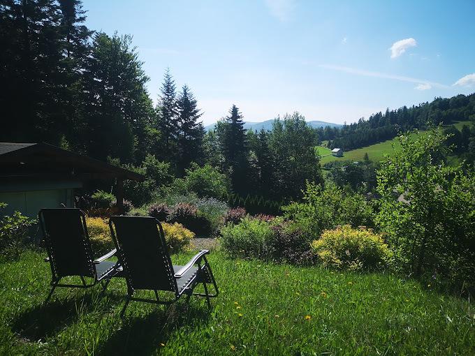 Do dyspozycji gości udostępniamy na sezon letni (lipiec, sierpień) w pełni wyposażone dwa domki z dużym ogrodem, położone na słonecznym stoku z pięknym widokiem na góry i lasy .