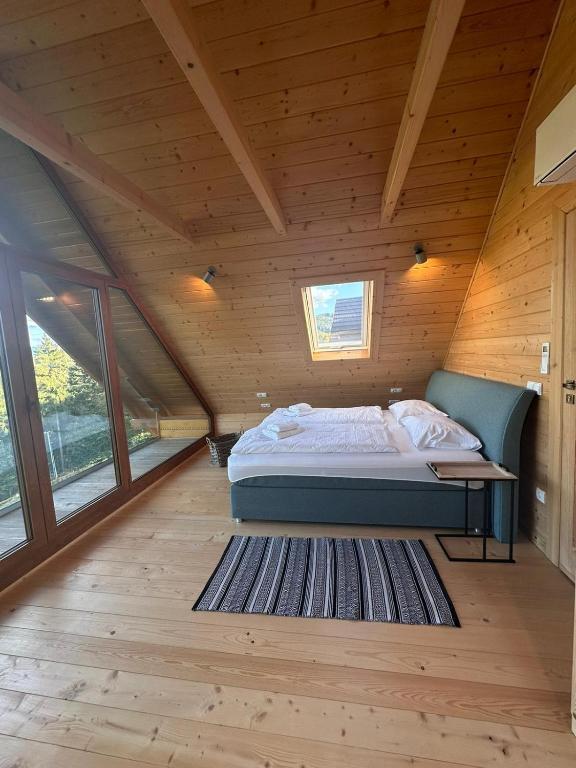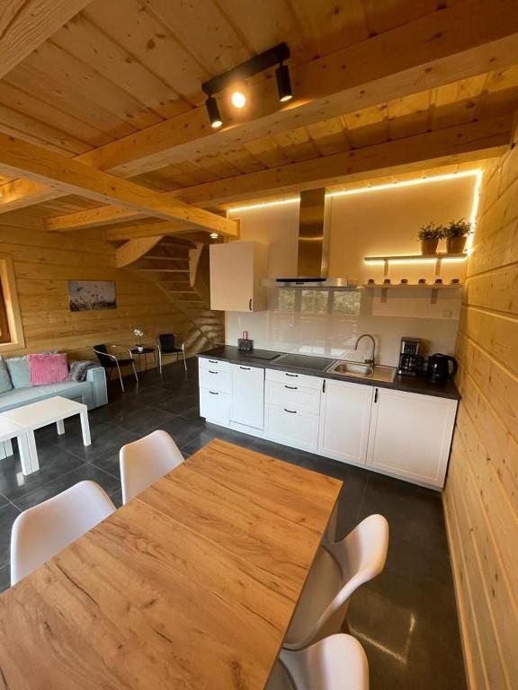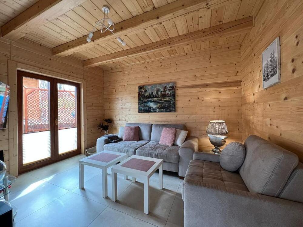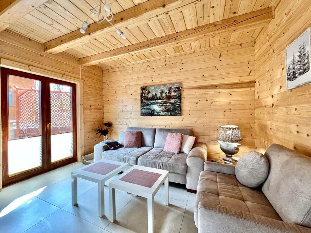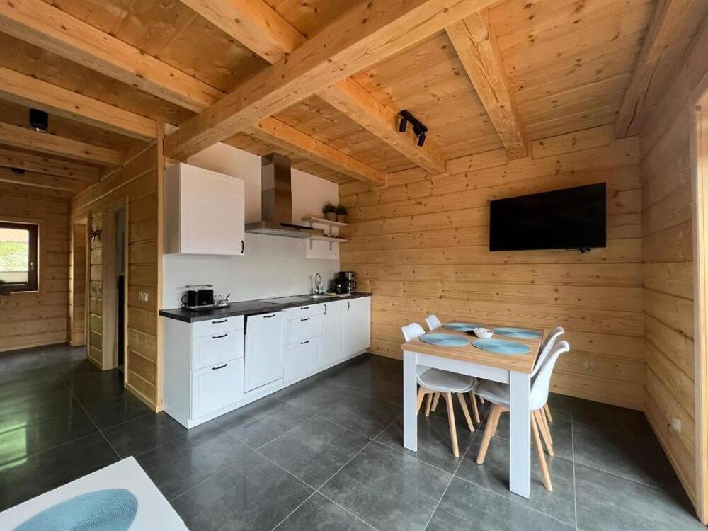 Każdy domek zaprojektowano z myślą o wygodzie i prywatności. Do dyspozycji gości oddano przestronny taras, idealny na poranną kawę czy wieczorny relaks. Wnętrza domków są nowoczesne i przytulne – wyposażone w telewizor z płaskim ekranem, komfortową część wypoczynkową z rozkładaną sofą oraz w pełni urządzoną kuchnię. Znajdują się w niej m.in. zmywarka, lodówka, mikrofalówka, płyta kuchenna, ekspres do kawy oraz czajnik, co pozwala na swobodne przygotowywanie posiłków.