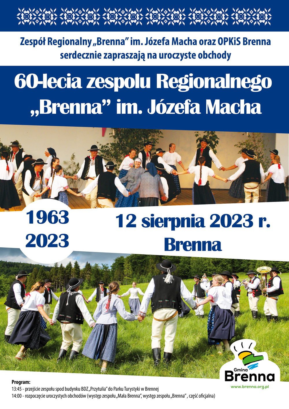 Zespół Regionalny „Brenna” im. Józefa Macha oraz OPKiS Brenna zerdecznie zapraszają na uroczyste obchody 60-lecia zespolu Regionalnego „Brenna” im. Józefa Macha