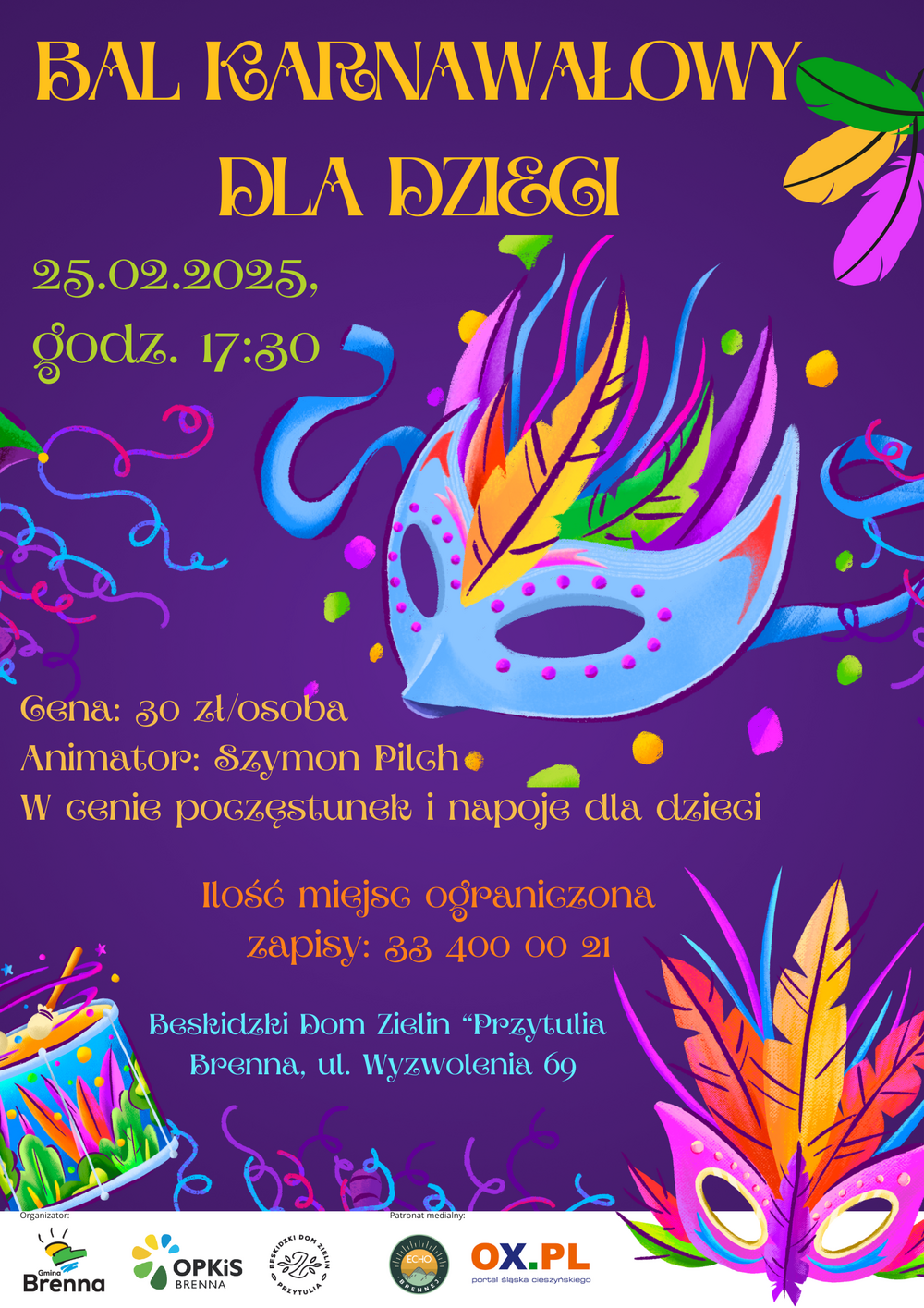 Bal poprowadzi Szymon Pilch, w cenie poczęstunek i napoje dla dzieci.