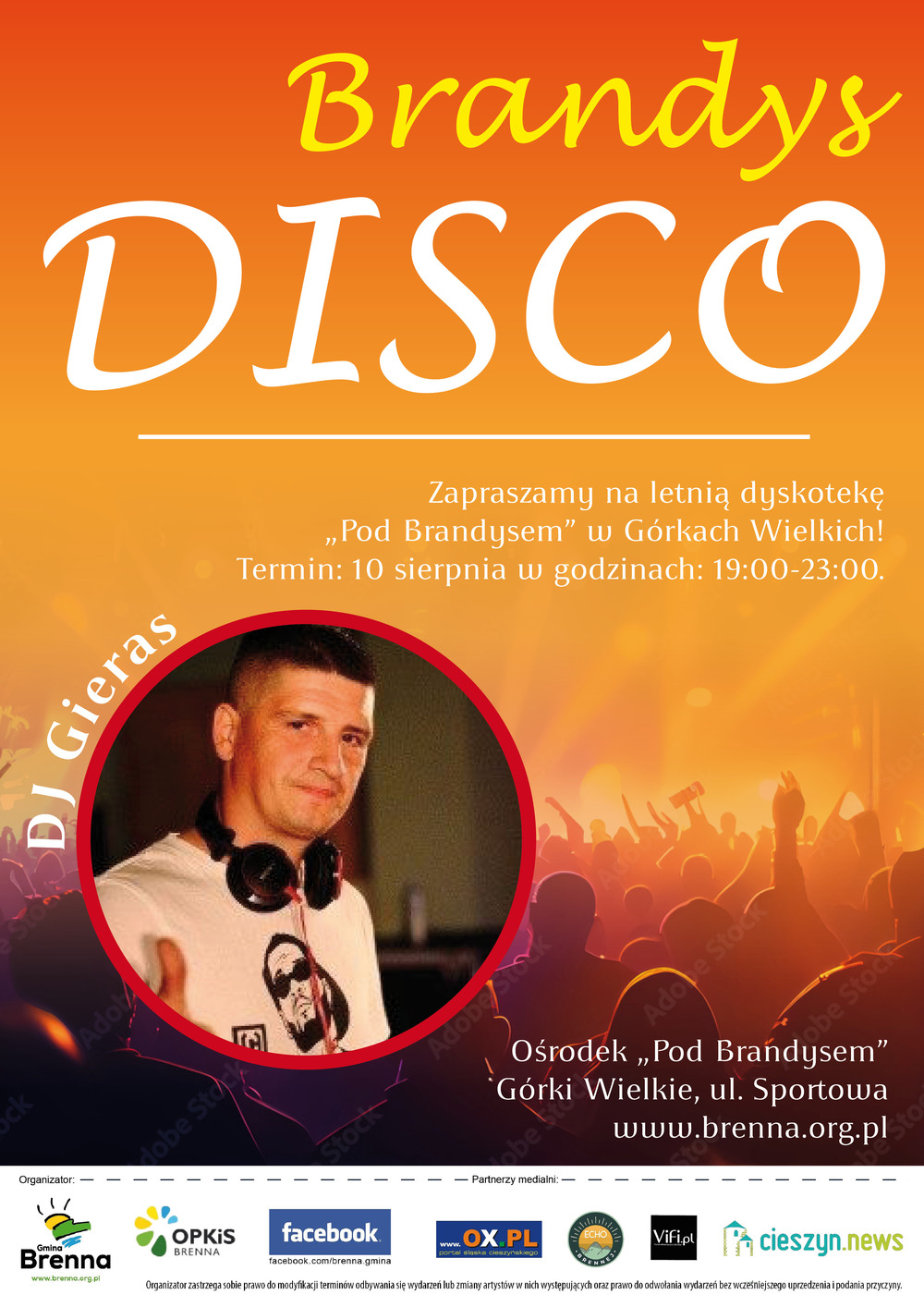 10sie19:00 Brandys Disco - DJ Gieras Ośrodek Pod Brandysem, Górki Wielkie, ul. Sportowa 8 Zapraszamy 10 sierpnia 2024r. na letnią dyskotekę w Ośrodku "Pod Brandysem". Bawimy się w godzinach: 19:00-23:00.