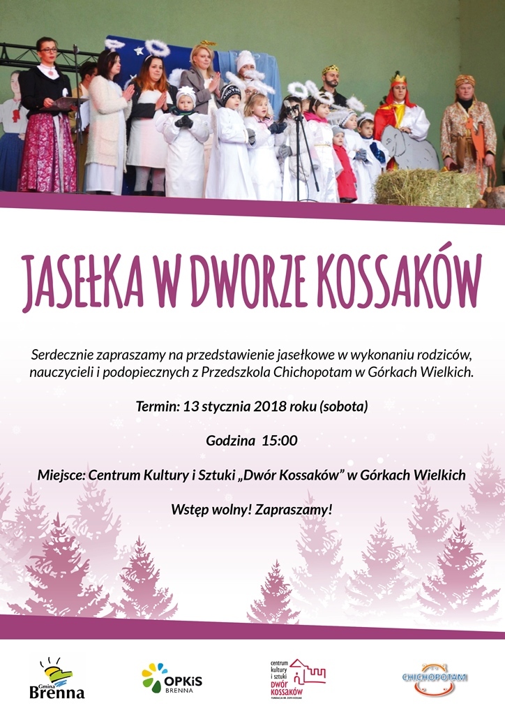 Serdeczenie zapraszamy na przedstawienie jasełkowe w wykonaniu rodziców, nauczycieli i podopiecznych z Przedszkola Chichopotam w Górkach Wielkich.