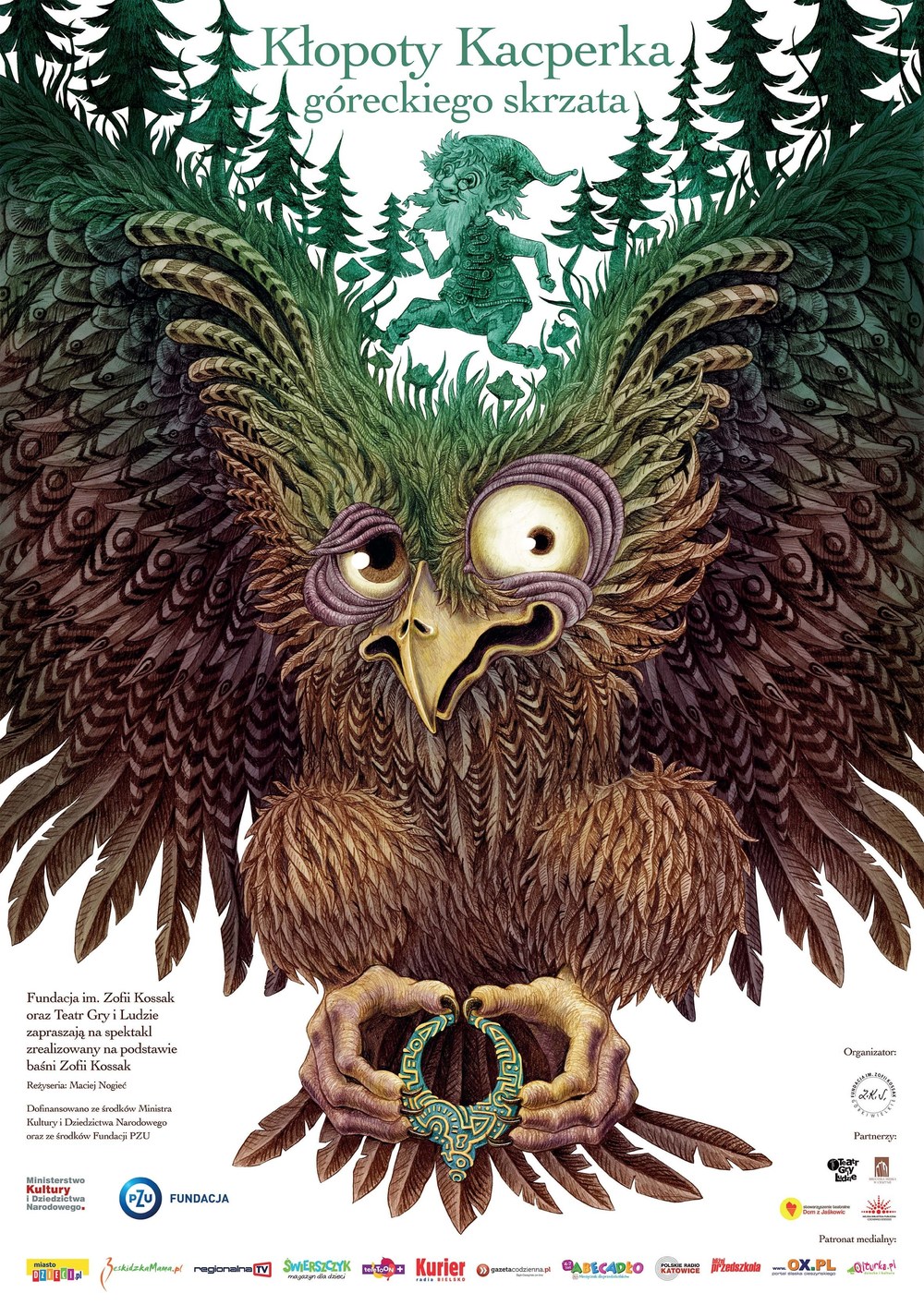 Baśń sprzed stu lat pozostaje aktualna także i dziś. Bawi, wzrusza i opowiada o wiernej przyjaźni i wzajemnej pomocy. To piękna historia skrzata, który opiekował się od wieków dworem w Górach Wielkich i jego mieszkańcami. Swoją misję pełnił dzięki posiadanemu talizmanowi zwanym w języku skrzatów MARU. Pewnego dnia okrutny Sato kradnie Kacperkowi talizman dający mu niezwykłe opiekuńcze moce. Bez magicznego przedmiotu bohater oraz domownicy, zarówno ci pochodzący ze świata realnego, jak i fikcyjnego, narażeni są na wielkie niebezpieczeństwo. To piękna i mądra baśń zainscenizowana w Polsce tylko dwa razy (Teatr „Lalka” w Warszawie 1998 rok oraz amatorskie przedstawienie w Cieszynie w latach PRLu). Spektakl oparty na baśni Zofii Kossak „Kłopoty Kacperka góreckiego skrzata” będzie podróżą w najbliższą i, wydawałoby się, znaną nam okolicę, która jednak tu jawi się jako świat zmitologizowany, tajemniczy. Mechanizmy, które nim rządzą nie pochodzą ze świata widzialnego. Są życiem podskórnym, niezauważalnym na co dzień. Jednak kiedy tu panuje porządek, to i w naszej potocznej rzeczywistości on także dominuje. Osią przedstawienia będzie właśnie moment zachwiania pewnego ładu, przejścia przez czasy ciemne, co jest trudne, ale też oczyszczające, odnawiające i jeszcze głębiej utrwalające pożądaną harmonię.