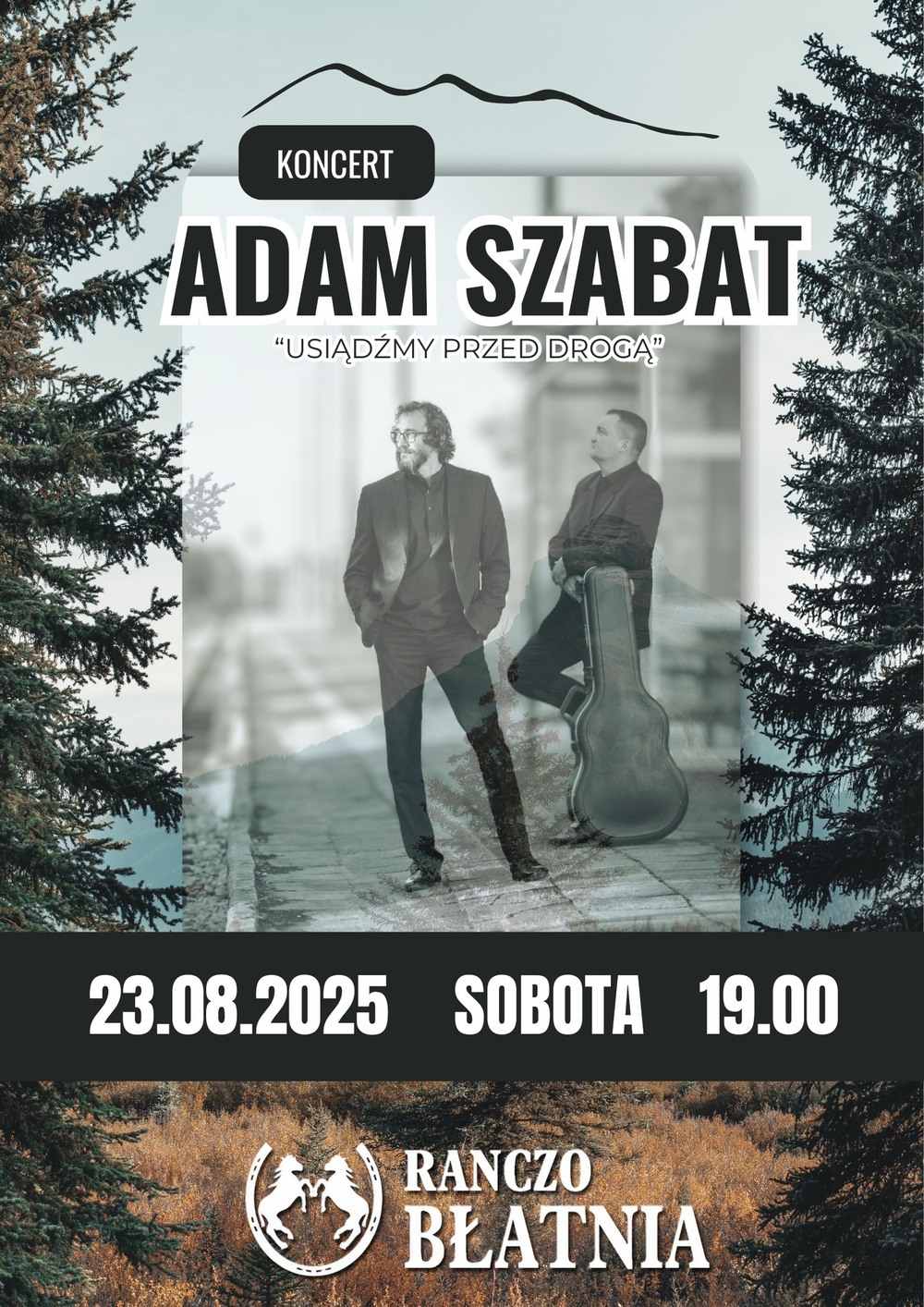Ranczo Błatnia zaprasza na wyjątkowy koncert Adama Szabata, który odbędzie się 23 sierpnia 2025 r. (sobota) o godz. 19:00 w klimatycznym otoczeniu gór.