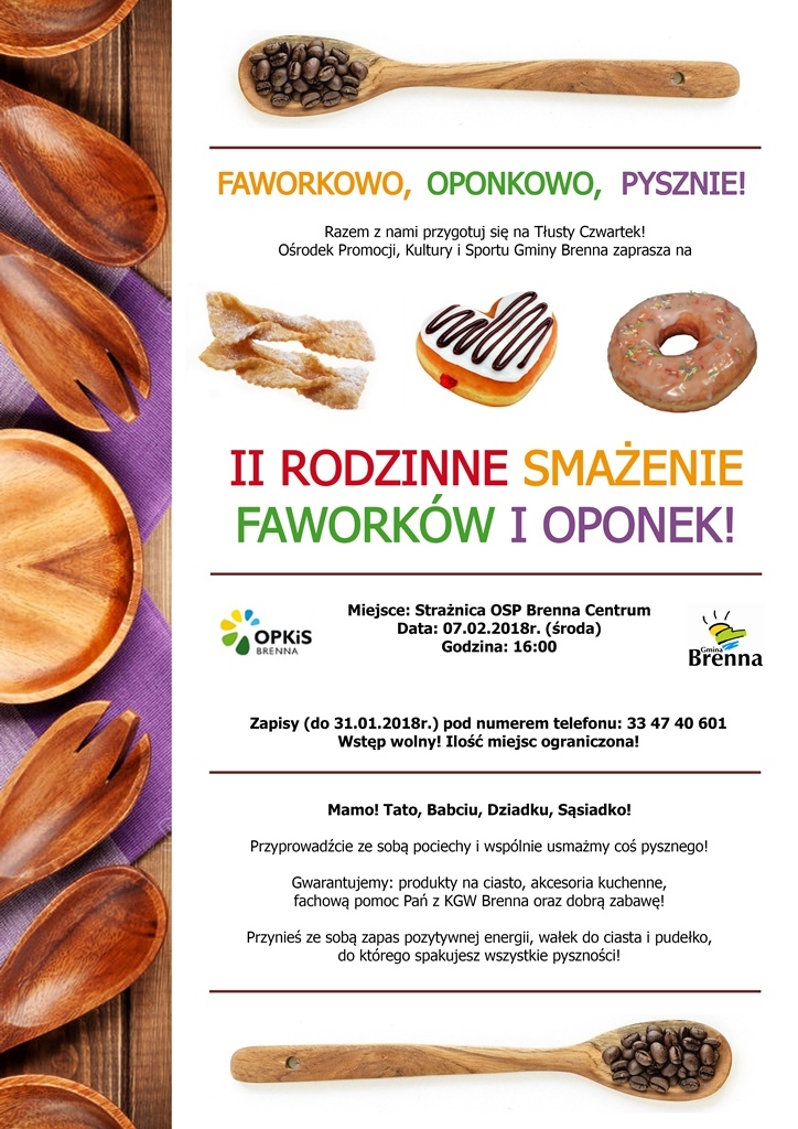 Gwarantujemy: produkty na ciasto, akcesoria kuchenne, fachową pomoc Pań z KGW Brenna oraz dobrą zabawę!