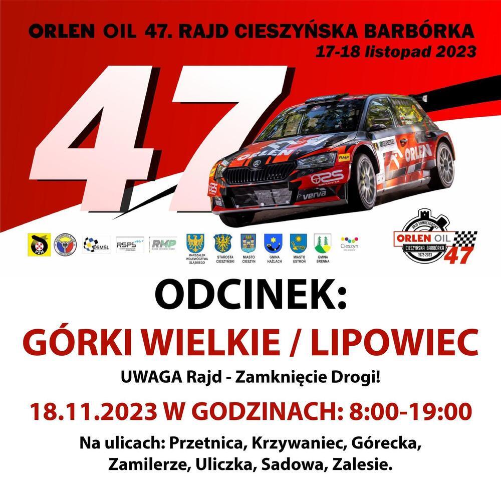 W Górkach Wielkich na ulicach Przetnica, Krzywaniec, Górecka, Zamilerze, Uliczka, Sadowa, Zalesie zostanie rozegrany odcinek specjalny Orlen Oil 47. Rajdu Cieszyńska Barbórka.
