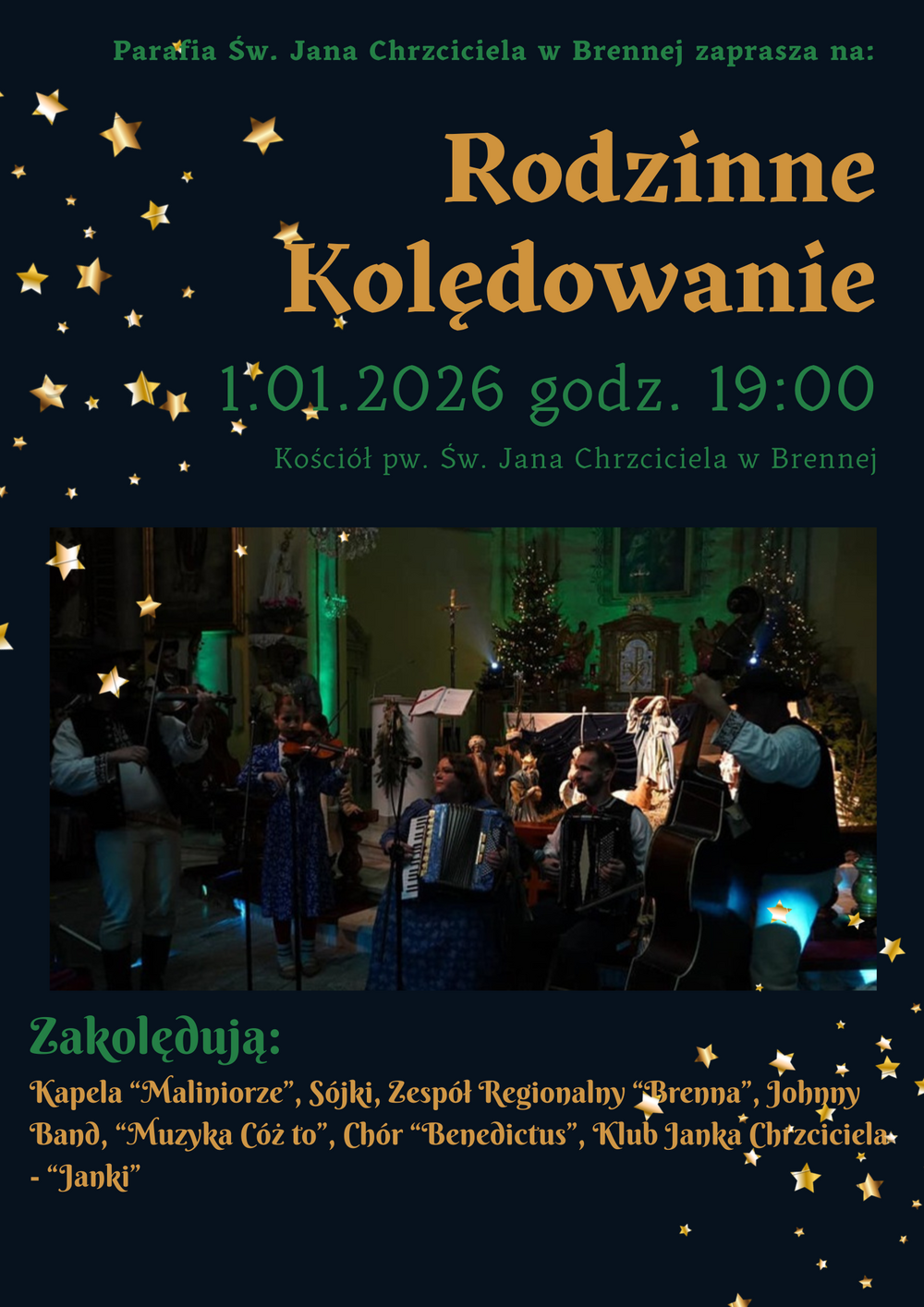Wspólne kolędowanie breńskich rodzin, przyjaciół to już tradycja. Spotkajmy się ponownie w kościele św. Jana Chrzciciela w Brennej w pierwszym dniu nowego roku.
