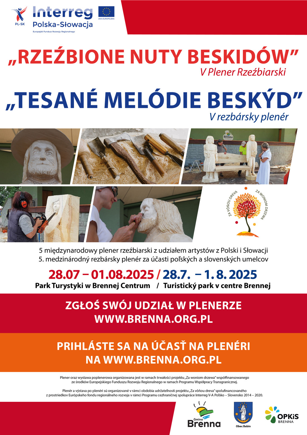 W ramach trwałości projektu „Za woniom drzewa”, Ośrodek Promocji, Kultury i Sportu Gminy Brenna zaprasza na V Plener Rzeźbiarski pn. „Rzeźbione nuty Beskidów” - „Tesané melódie Beskýd”.