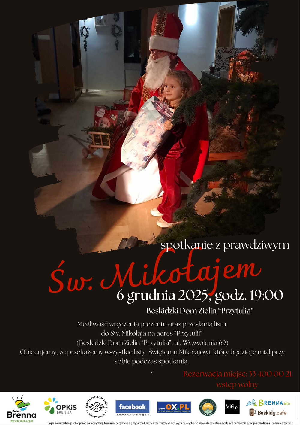 Jest również możliwośc wysłania Listu do Św. Mikołaja na adres Beskidzkiego Domu Zielin "Przytulia" (Brenna, ul. Wyzwolenia 69), my obiecujemy, że przekażemy list Świętemu.