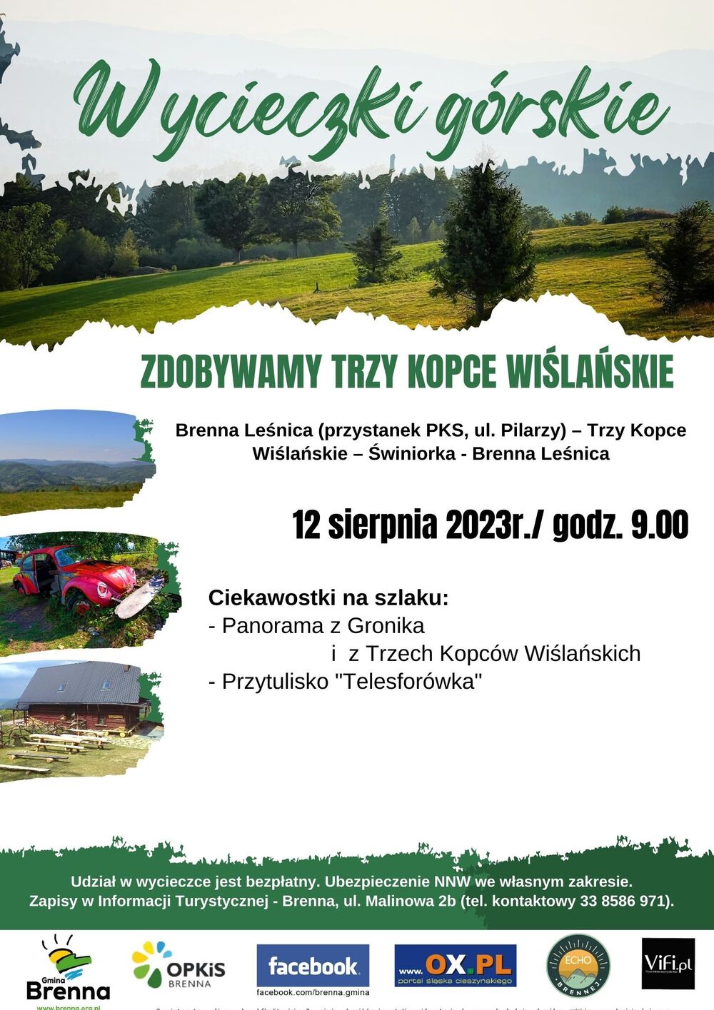 Zapisy w Informacji Turystycznej - Brenna, ul. Malinowa 2b (tel. kontaktowy 33 8586 971).