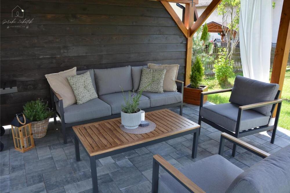 Na zewnątrz czeka na Państwa duży ogród z altanką, idealny do relaksu na świeżym powietrzu. Dostępny jest również grill oraz leżaki do wypoczynku w słoneczne dni.