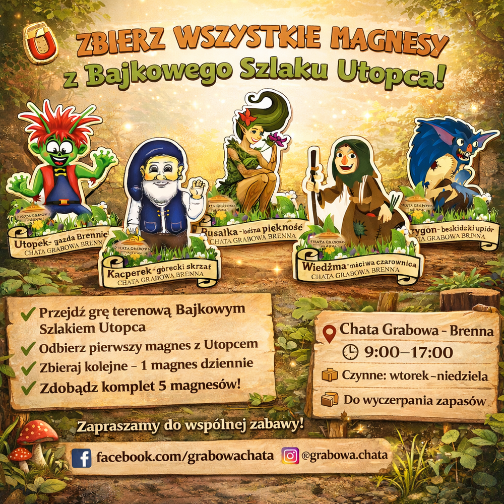 Z przyjemnością informujemy, że pamiątkowe magnesy – nagrody dla uczestników gry terenowej „Bajkowym Szlakiem Utopca” – są ponownie dostępne!