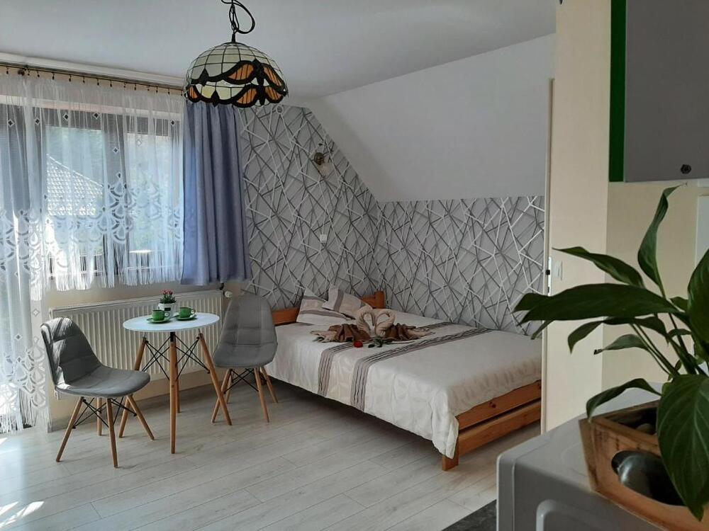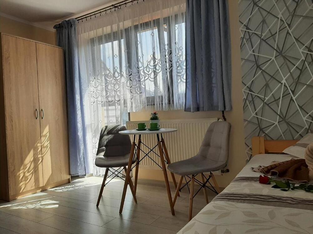 Oferujemy apartament (2 pokoje, 2 łazienki, kuchnia, 2 tarasy) oraz pokoje 2,3,4 osobowe (każdy z nich posiada własną łazienkę, TV, lodówkę, balkon, WiFi).
