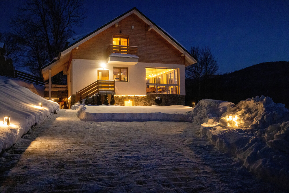 Dom otoczony jest spokojem natury, gwarantując komfort, prywatność i niezapomniany klimat górskiego wypoczynku.