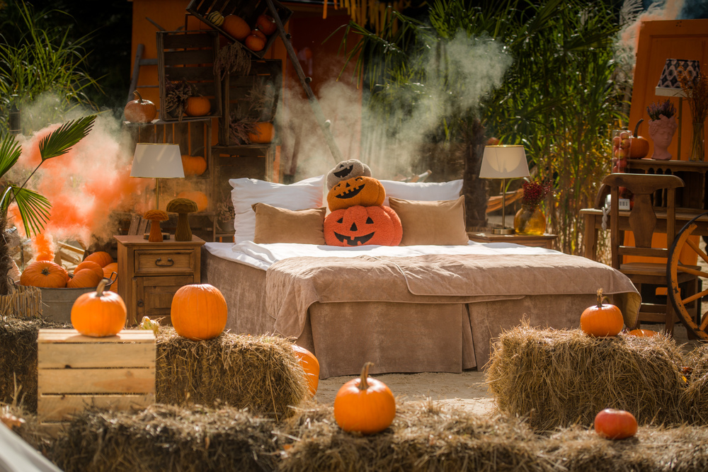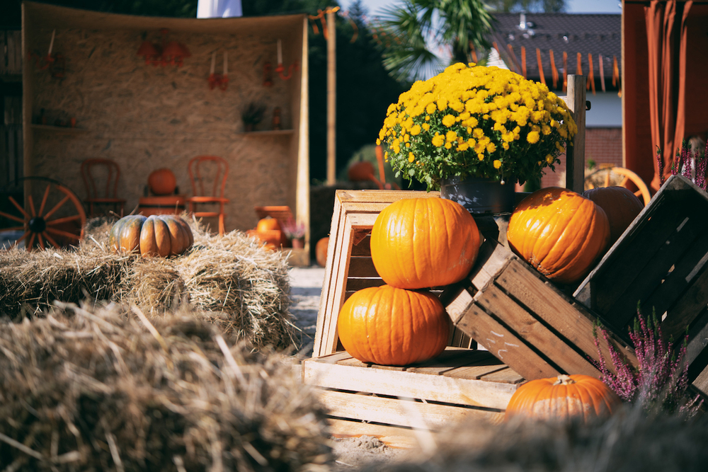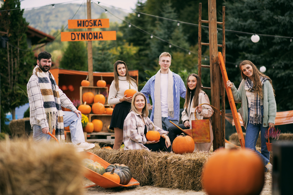 Kawiarnia zlokalizowana przy hotelu Kotarz, otoczona jesiennym klimatem Wioski Dyniowej.