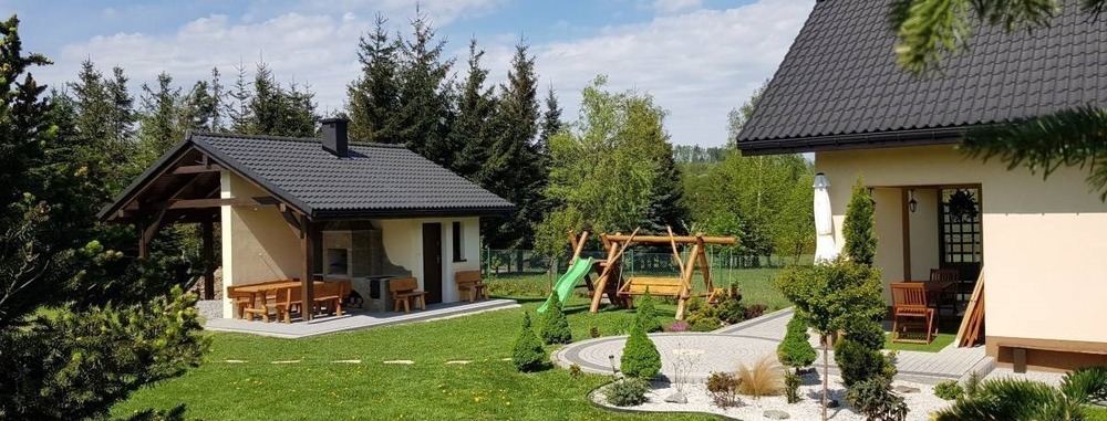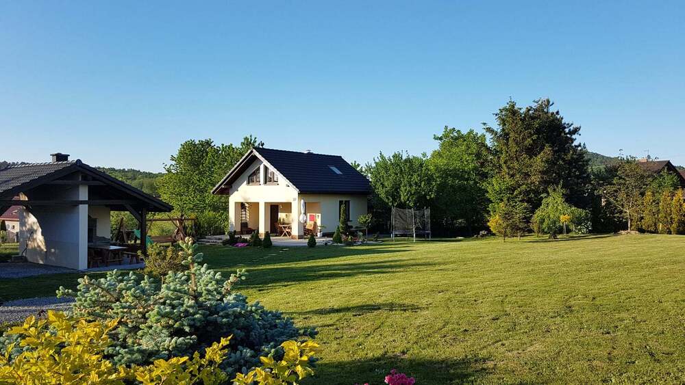 Wyjątkowy, w pełni wyposażony i przepięknie urządzony nowy domek rekreacyjny z wiatą grillową, dużym ogrodem oraz pięknym widokiem na góry i lasy.