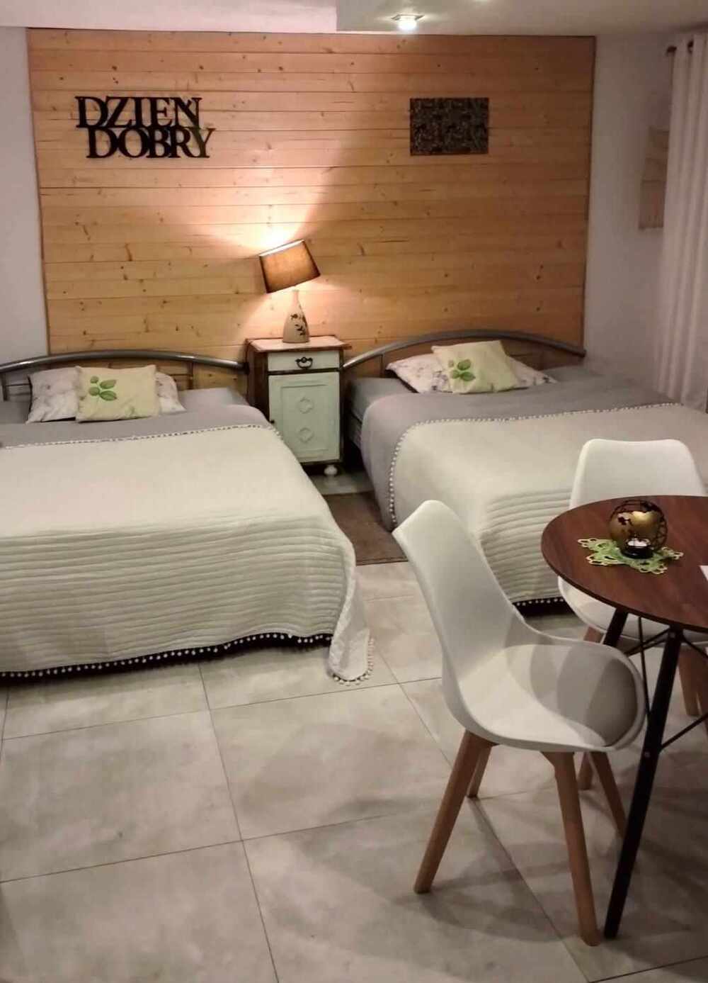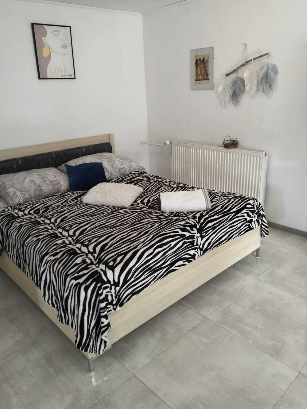 Miejsc noclegowych jest dla max 8 osób. Apartament jest urządzony nowocześnie, z aneksem kuchennym, wyposażonym w tester, czajnik, płytę indukcyjną, lodówkę, ekspres do kawy, naczynia oraz zmywarkę.