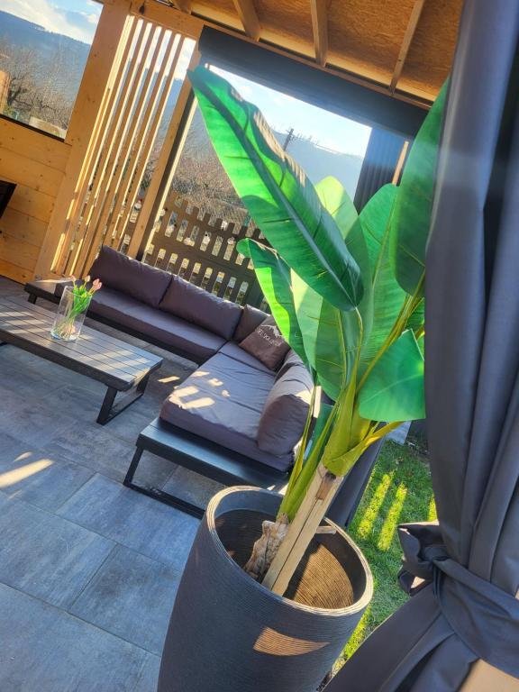 - duży, częściowo zadaszony taras z malowniczym widokiem na góry i meblami wypoczynkowymi