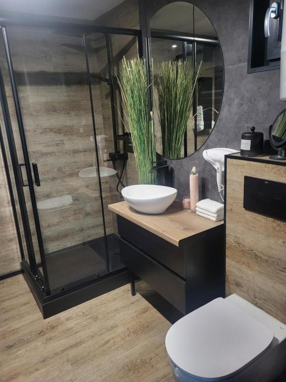 - łazienka z prysznicem i toaletą